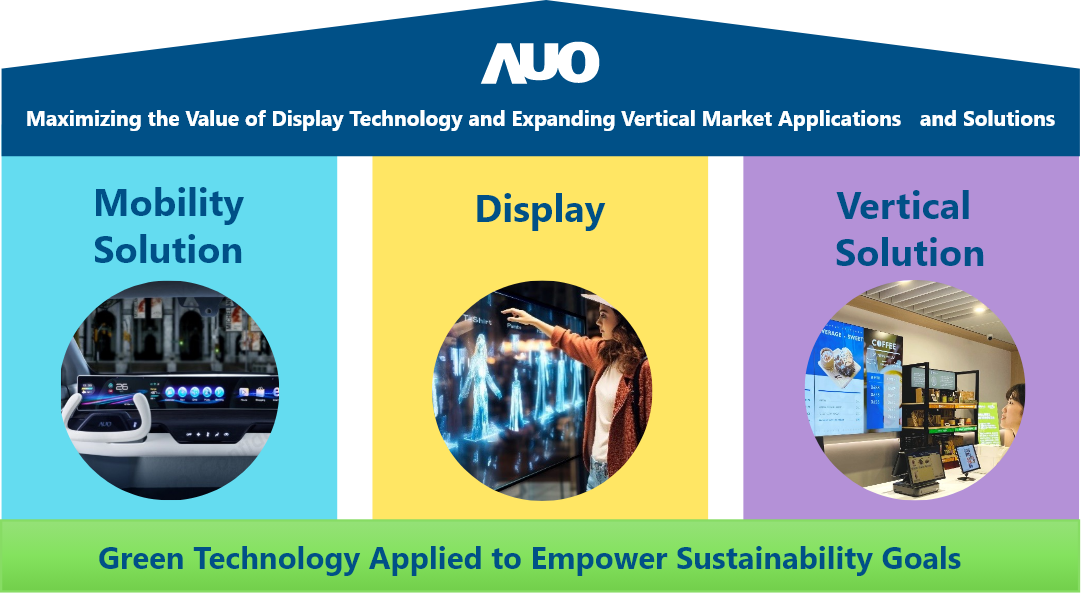 We continue to drive our biaxial transformation strategy, focusing on enhancing the added value of display technologies (Go Premium) and deepening applications in vertical markets (Go Vertical). In response to AUO's competitive advantages and trends, we have established three pillars for sustainable business: Display, Mobility Solutions, and Vertical Solutions. With a solid foundation in display technology, AUO extends diverse solutions across various verticals. Advanced Display technologies benefit the development of Mobility and Vertical solutions, while also utilizing green technology and practices to achieve our vision of sustainable operations throughout the transformation process.